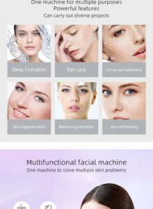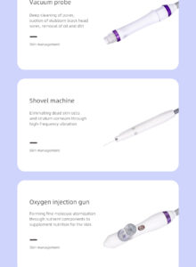 It is the latest face comprehensive beauty machine, which combines the functions of deep cleansing, oxygenation&skin renewal, nutrient introduction, skin firming&anti-ageing and soothing&repairing for facial care. As a multifunctional machine based on high technologies, it can effectively solve facial problems like dryness, pore blockage, lack of elasticity, saggy skin and uneven skin tone in a safe way