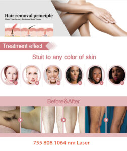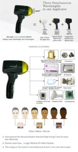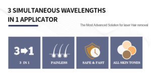 ▶ 3 wavelength diode laser hair removal machine is more professional than OPT hair removal machine, can get better results in a short time. ▶ 2 handles with different spot size:15*20mm, 15*40mm, with “IN-Motion” treatment method fastest treatment speed.